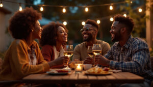 Friends drinking wine is about connection. Keep it simple. Choose a few good bottles, easy snacks, and a fun game. The rest takes care of itself.