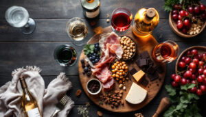 • Savory: Prosciutto, salami, olives, roasted nuts. Try with Merlot or Cava.